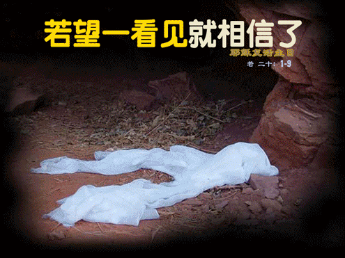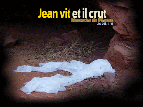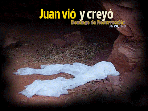 Sáng sớm ngày thứ nhất trong tuần, lúc trời còn tối, bà Ma-ri-a Mác-đa-la đi đến mộ, thì thấy tảng đá đã lăn khỏi mộ. Bà liền chạy về gặp ông Si-mon Phê-rô và người môn đệ Đức Giê-su thương mến. Bà nói: "Người ta đã đem Chúa đi khỏi mộ; và chúng tôi chẳng biết họ để Người ở đâu?" Ông Phê-rô và môn đệ kia liền đi ra mộ. Cả hai người cùng chạy. Nhưng môn đệ kia chạy mau hơn ông Phê-rô và đã tới mộ trước. Ông cúi xuống và nhìn thấy những băng vải còn ở đó, nhưng không vào. Ông Si-mon Phê-rô theo sau cũng đến nơi. Ông vào thẳng trong mộ, thấy những băng vải để ở đó, và khăn che đầu Đức Giê-su. Khăn này không để lẫn với các băng vải, nhưng cuốn lại, xếp riêng ra một nơi. Bấy giờ người môn đệ kia, kẻ đã tới mộ trước, cũng đi vào. Ông đã thấy và đã tin. Thật vậy, trước đó, hai ông chưa hiểu rằng: theo Kinh Thánh, Đức Giê-su phải chỗi dậy từ cõi chết.